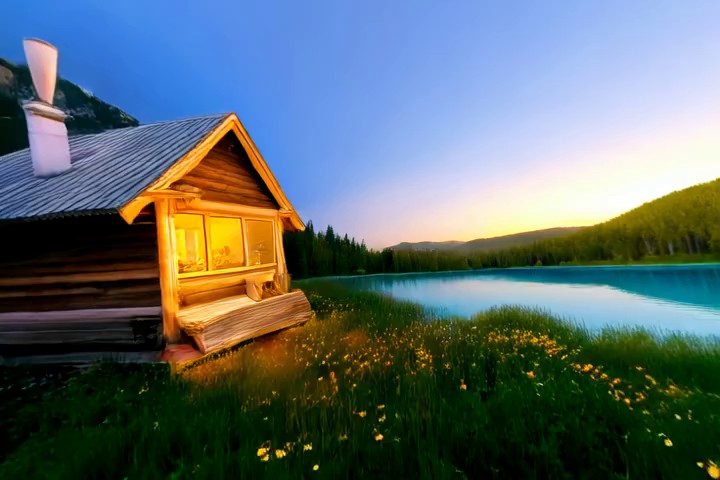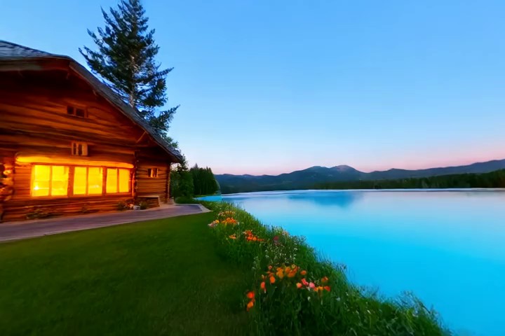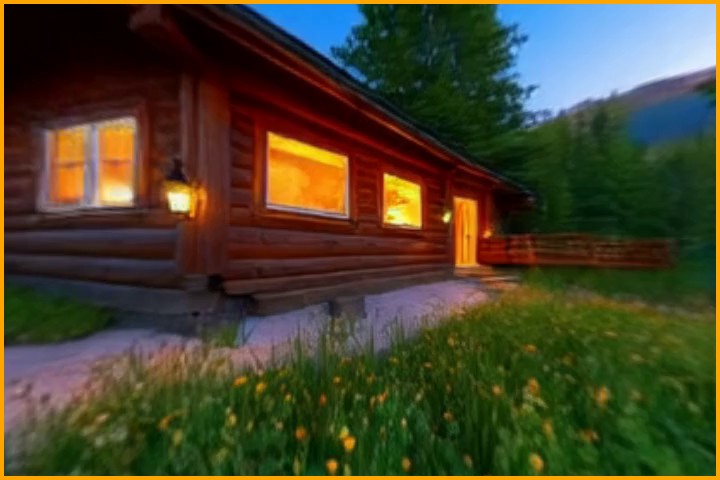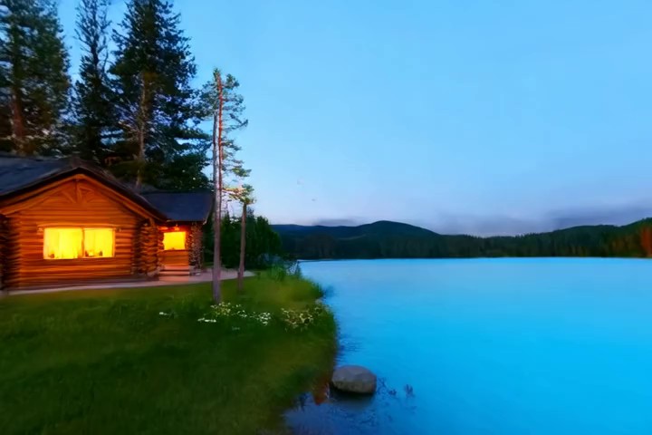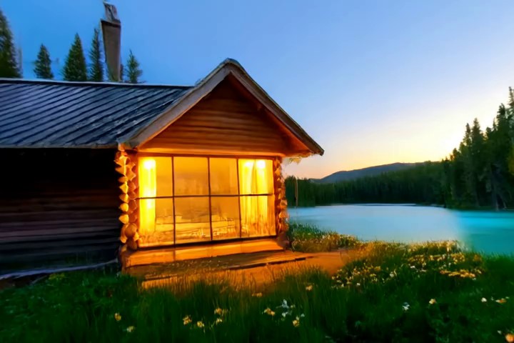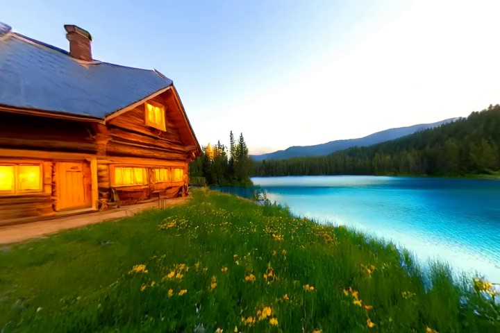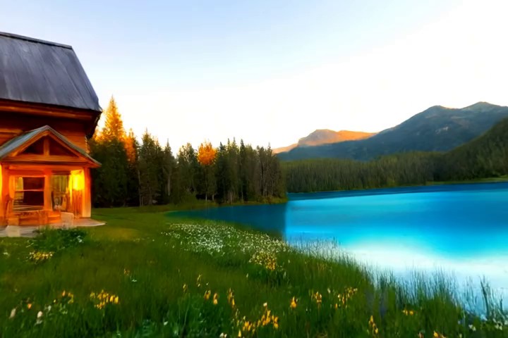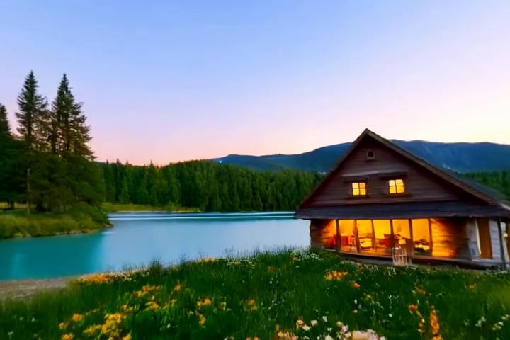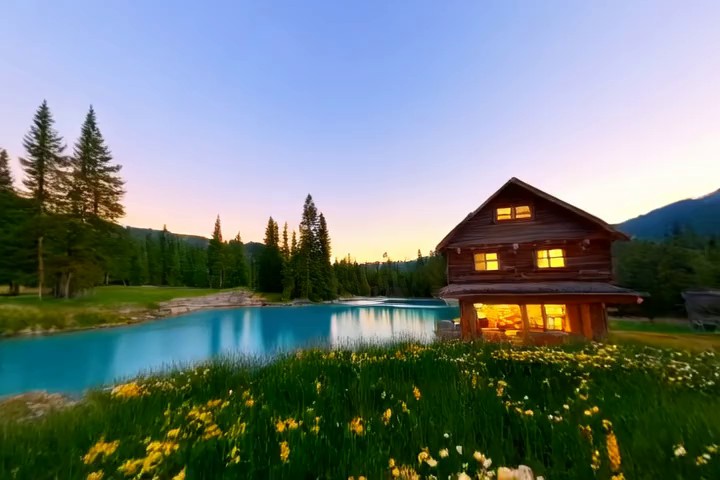 Prompt:A quiet mountain village during snowfall as smoke rises from chimneys and lights glow along the snowy street. Many llamas are walking around in the street.