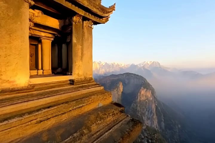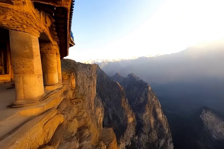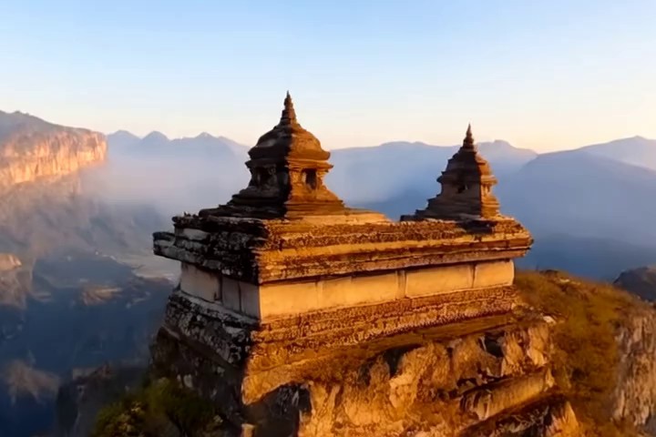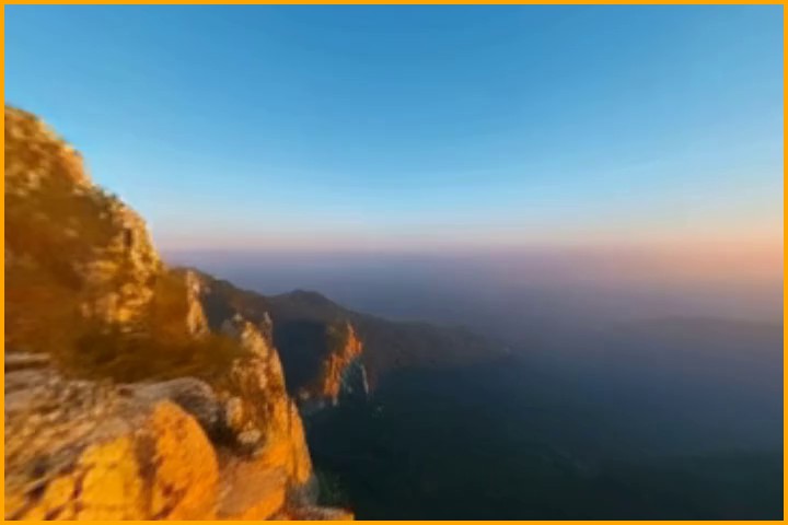 Prompt: A dramatic canyon landscape with towering red rock cliffs carved by a winding river far below, warm sunset light illuminating layered rock formations, sparse desert vegetation clinging to the edges of the cliffs, vast open sky with glowing clouds above the horizon, rugged stone textures and dry shrubs in the foreground, ultra-detailed, cinematic lighting, natural colors, photorealistic, 35mm photography, depth of field, high dynamic range