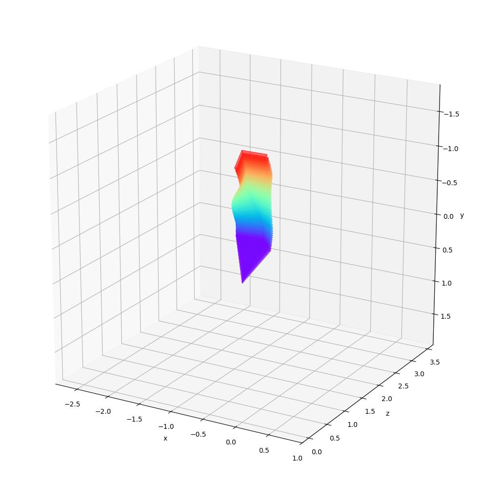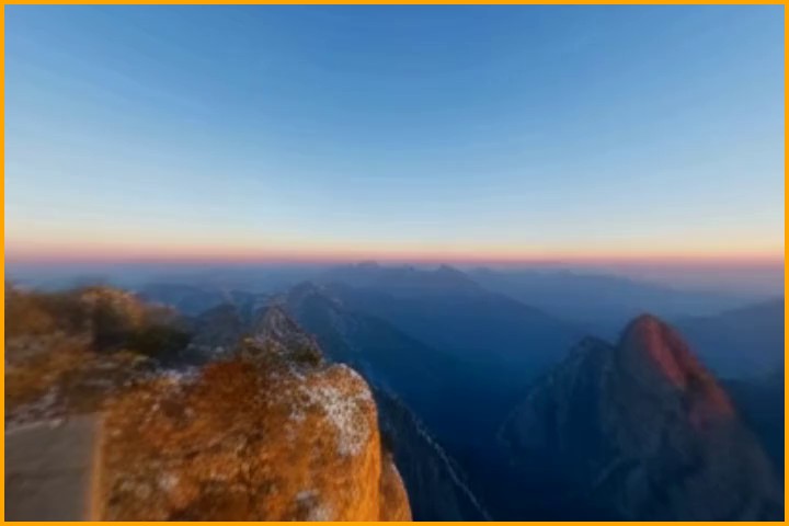 Camera description (for AC3D): The camera starts with extreme tilt-up of 64 degrees, and a large Dutch angle tilted clockwise 35 degrees. The camera ends with pan of 21 degrees turned right, extreme tilt-down of 61 degrees, a large Dutch angle tilted clockwise 35 degree