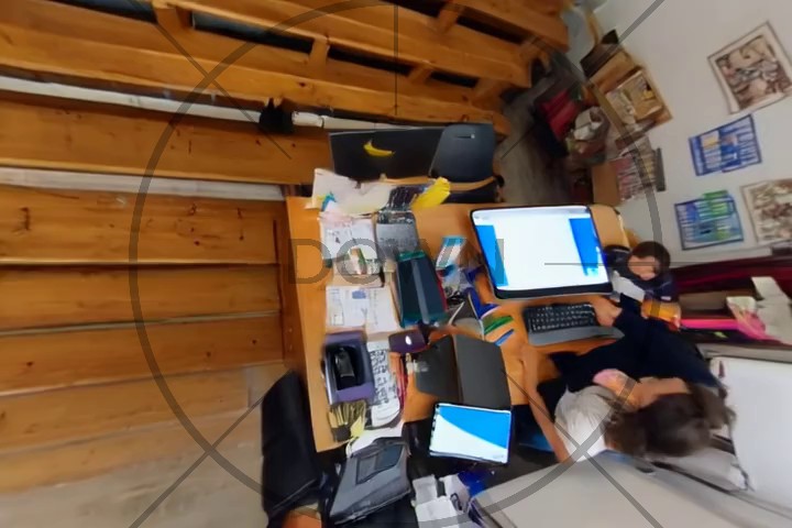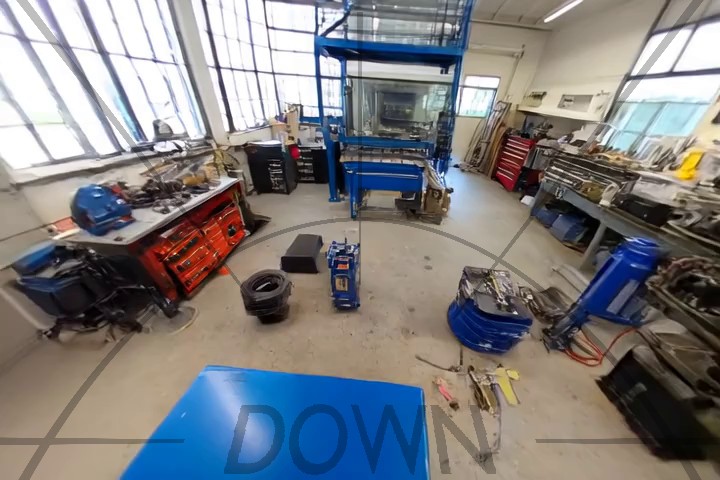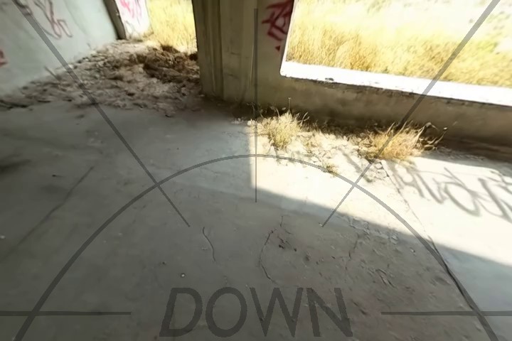 we generate a third set of videos, this time looking straight down (right), and also caption them.
