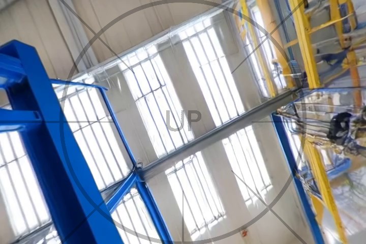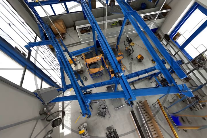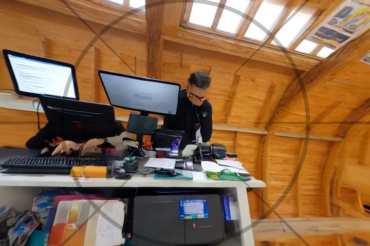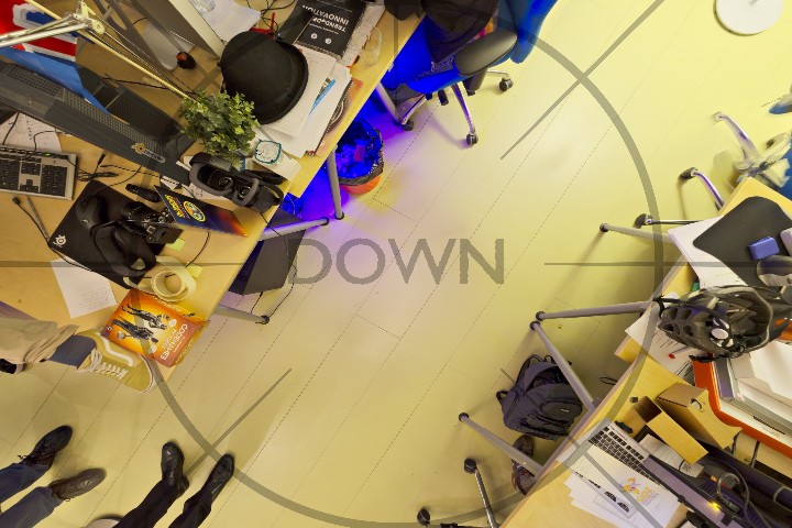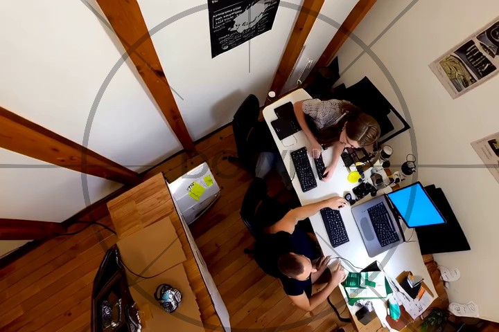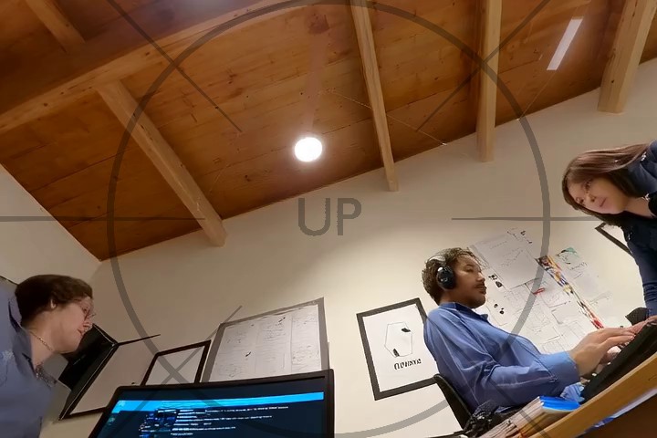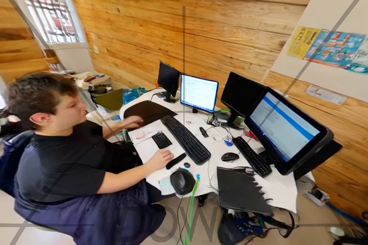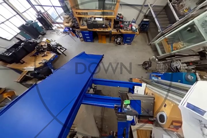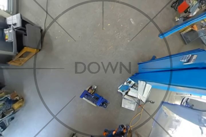 Start by mentionning that the video is taken looking down, e.g. "Looking down, we see ..." or "Below is a view of ...".