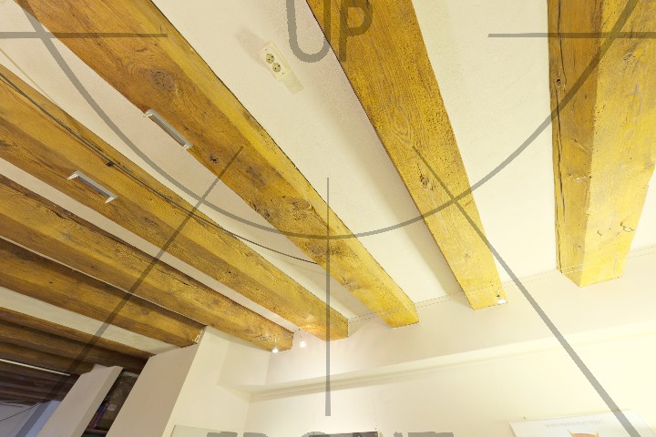 Caption: People walk under an archway in a historic city square. Looking down, we see a person walking on a cobblestone path.