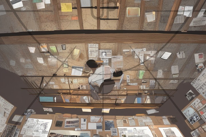 Camera description (for AC3D): The camera starts with large tilt-down of 43 degrees, and a large Dutch angle tilted counterclockwise 22 degrees. The camera ends with pan of 32 degrees turned right, large tilt-down of 23 degrees, a large Dutch angle tilted counterclockwise 22 degree