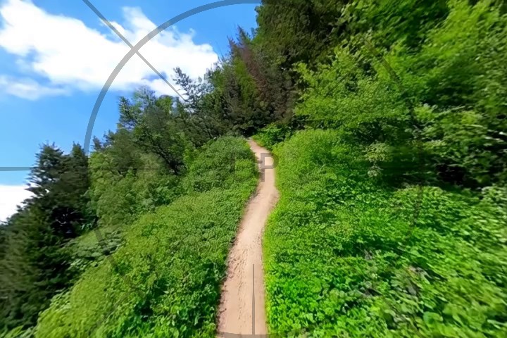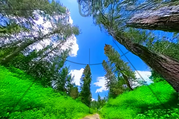 where $\mathbf{\tilde{u}}_0$ corresponds to the average up vector of the first frame, $\mathbf{R}_{\text{pano},f}$ corresponds to the sampled camera rotation for frame $f$