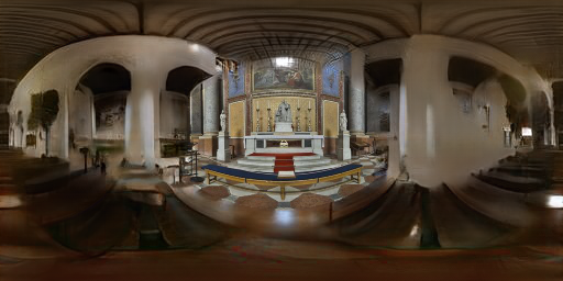 We perform this at every 90˚ interval in azimuth and [-45, 0, 45]˚ in elevation within the panorama output by our method,