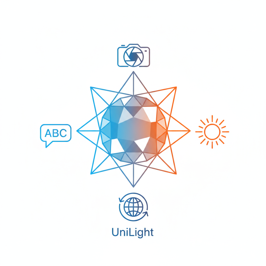 Lighting has a strong influence on visual appearance, yet understanding and representing lighting in images remains notoriously difficult. Various lighting representations exist, such as environment maps, irradiance, spherical harmonics, or text, but they are incompatible, which limits cross-modal transfer. We thus propose UniLight, a joint latent space as lighting representation, that unifies multiple modalities within a shared embedding. Modality-specific encoders for text, images, irradiance, and environment maps are trained contrastively to align their representations, with an auxiliary spherical-harmonics prediction task reinforcing directional understanding. Our multi-modal data pipeline enables large-scale training and evaluation across three tasks: lighting-based retrieval, environment-map generation, and lighting control in diffusion-based image synthesis. Experiments show that our representation captures consistent and transferable lighting features, enabling flexible manipulation across modalities.
